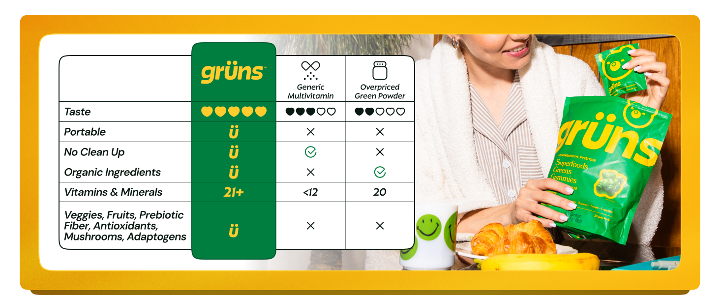 "As a former pro athlete, I've always looked for ways to stay sharp, feel my best, and fuel my body without overcomplicating it. Grüns uses clean ingredients that actually deliver, and I love that it makes better health accessible to everyone, whether you're training at the highest level or just trying to make good choices every day."